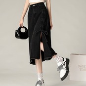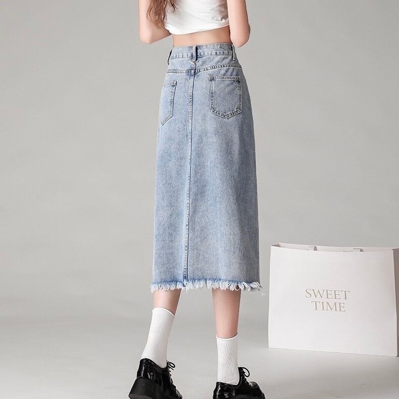 ミモレ丈で、すっきりとしたセミタイトシルエット。