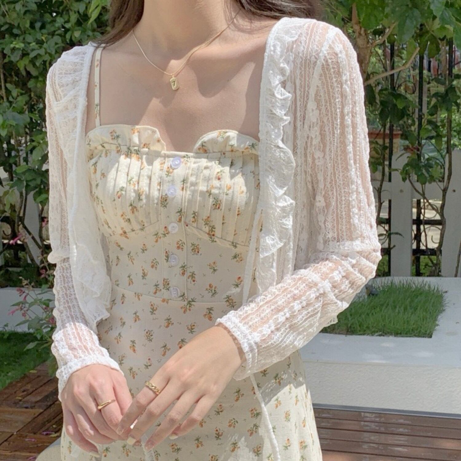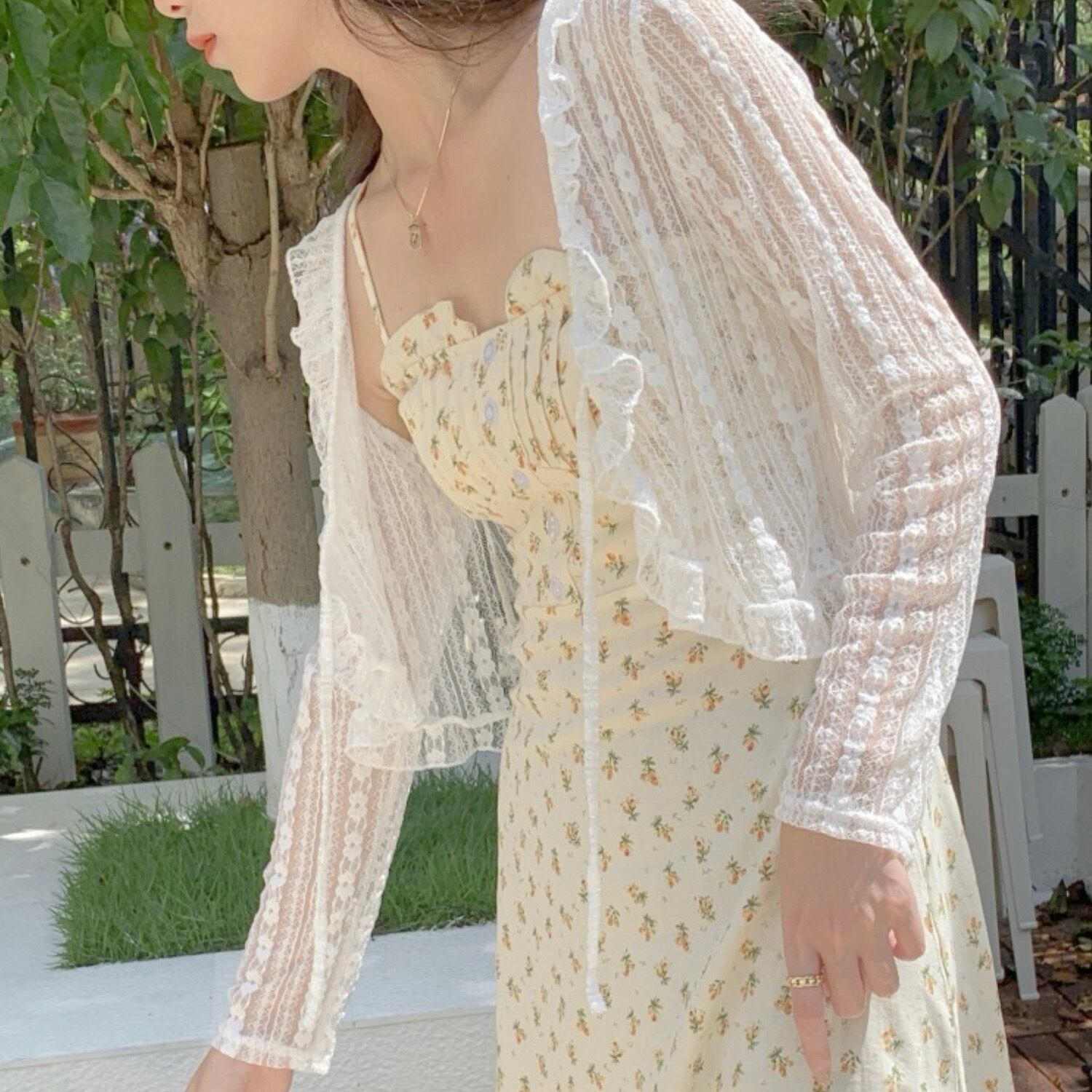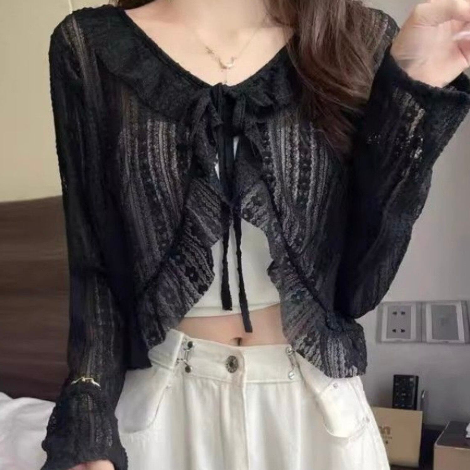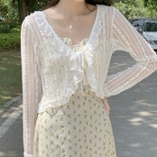 繊細なレースを使ったかわいらしいカーディガン。