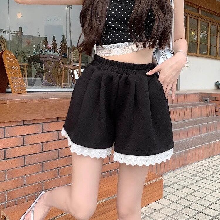 裾にあしらわれたレースがかわいらしいスウェットのショートパンツ。
