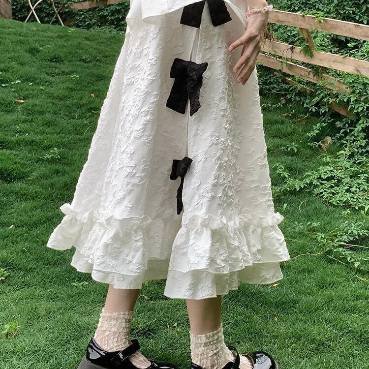 存在感のあるサイドリボンが目を惹くロングスカート。