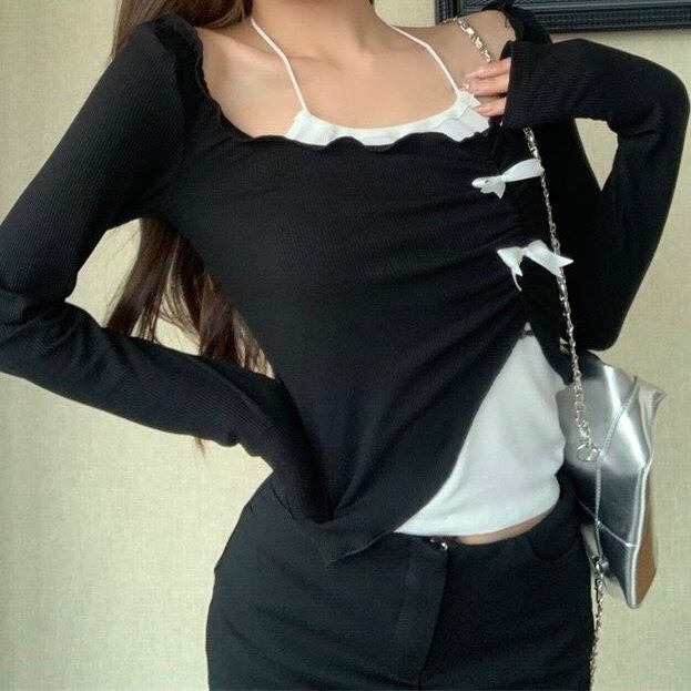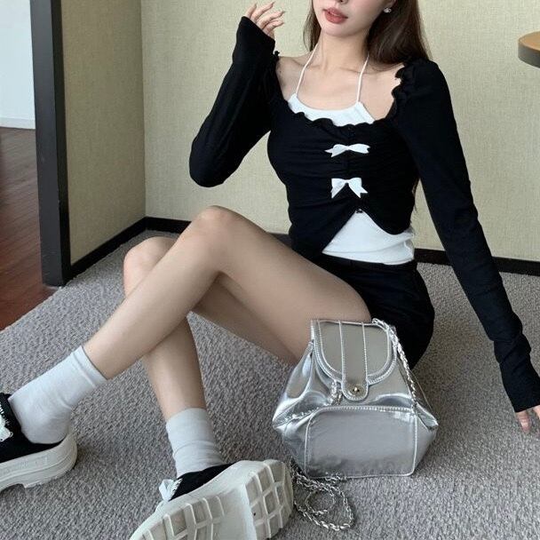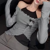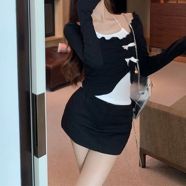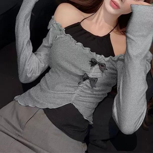 アシンメトリーなデザインがポイントのアンサンブルです。