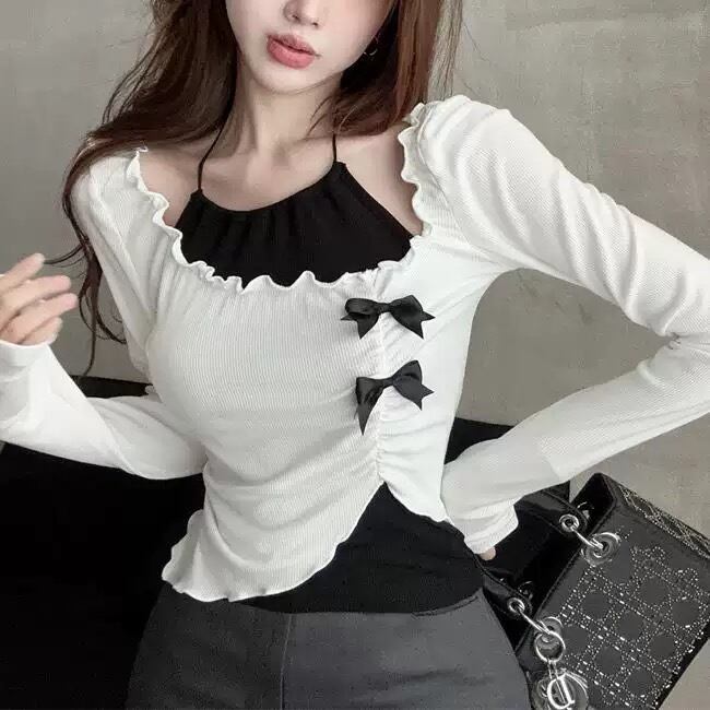 ネックラインはメロウ仕立てで女性らしくやわらかな印象に。